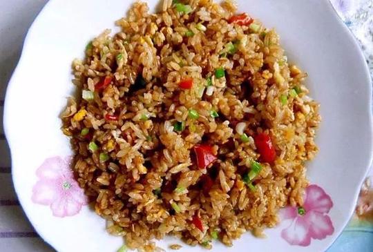 隔夜米饭、油渣、鸡蛋、鸡精、生抽、老抽、葱