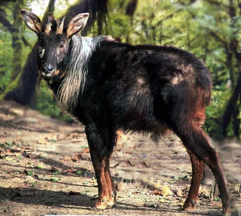 苏门羚,中文学名鬣羚,也叫明鬃羊,属牛科,典型林栖兽类,是亚洲东南部热带、亚热带地区的典型动物之一,主要活动于海拔1000~4400米针阔混交林、针叶林或多岩石的杂灌林。它的角像鹿不是鹿、蹄像牛不是牛、头像羊不是羊、尾像驴不是驴,人们据此将其与驯鹿、驼鹿和麋鹿一起称为“四不像”。因其最早是在印尼的苏门答腊被发现的,因此又叫苏门羚。而浙江省个别地区称之为牧羊。在中国,目前主要分布于甘肃、青海、浙江、安徽、湖北、江西、四川、云南、西藏、福建、广东、广西以及陕南等地,是中国国家二级重点保护动物。