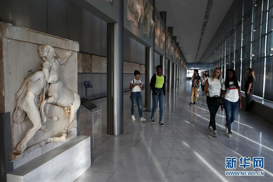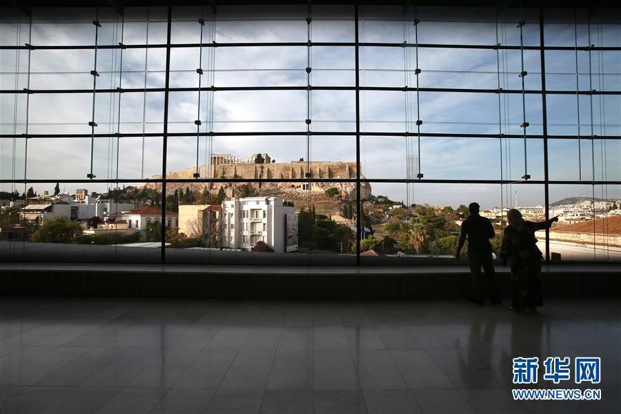 这是11月7日从希腊雅典卫城博物馆内拍摄的远处的雅典卫城。 雅典卫城博物馆的前身于1886年建于卫城山丘,距卫城300米的新馆在2009年正式开放,馆内保存着女像柱、帕特农神庙雕塑等名作。 新华社发(马里奥斯?罗洛斯 摄)