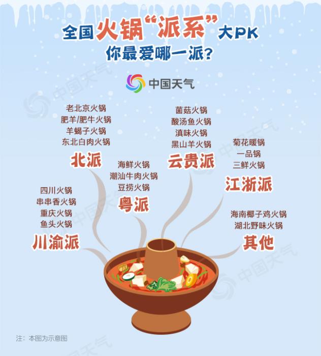 “没有什么事是一顿火锅解决不了的,如果有,那就两顿!”,在吃货眼里,世界万物皆可涮……12日晚开始,10月以来最强冷空气“倾巢南下”,多地气温遭“腰斩”。中国天气网推出首个全国吃火锅抗寒地图,告诉你哪里将冷到瑟瑟发抖,急需火锅“续命”,并盘点全国六大派系火锅,看看你最爱哪一派?网友:“小孩子才做选择,我都喜欢。”