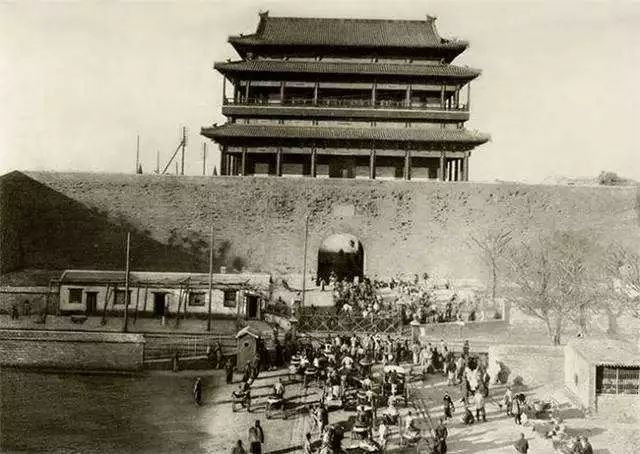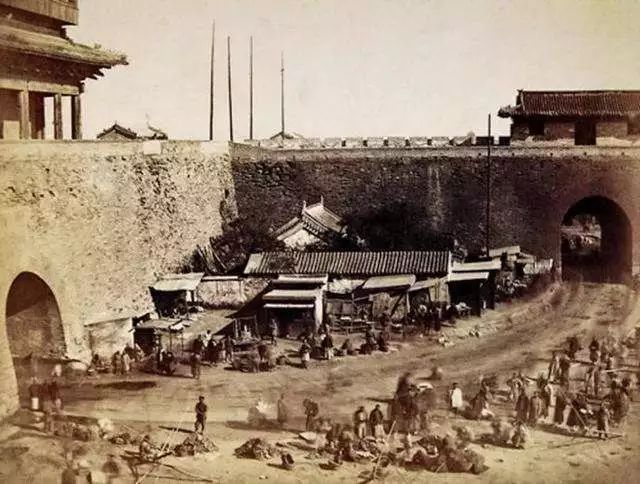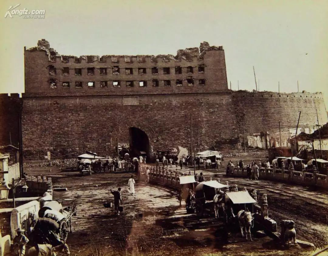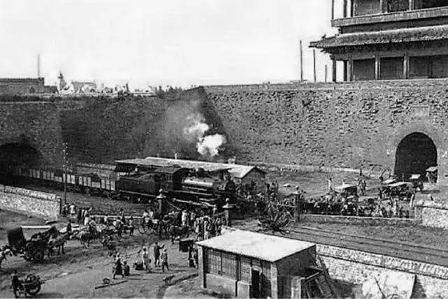 崇文门:铁路横穿瓮城 清光绪二十六年(1900年),崇文门箭楼被八国联军炮火击毁,仅剩城台。1901年英军为将铁路修至正阳门下,在崇文门东、西瓮城墙上开辟铁路洞子门,崇文门也因此成为北京最早有铁路横穿瓮城的城门。因原瓮城门洞不能再作出入城的通道,于是在箭楼城台正中开辟券门作为进出城的通道。这种状况一直持续到北平和平解放。