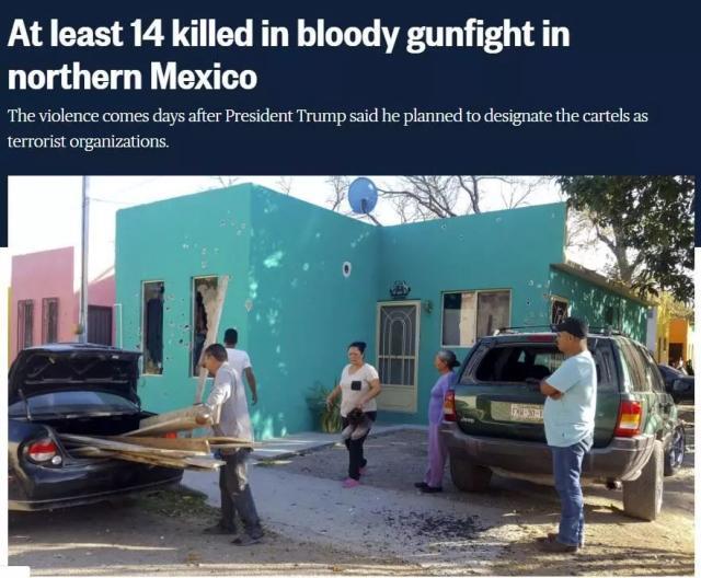 上月5日,同样是在美墨边境的墨西哥一侧,在高速公路上驾车出行的一家人遭遇毒贩袭击,包括3名妇女和一对双胞胎婴儿在内的9人身亡。这一家人拥有美墨双重国籍,当时美国总统特朗普事后发推特称要帮助墨西哥打击毒贩。但墨西哥政府表示坚决反对,墨西哥总统洛佩斯于当天上午迅速拒绝了这一提议。
