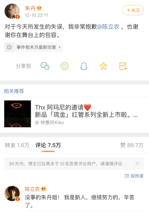 在颁奖环节中,把新生代偶像陈立农叫成了“赵立农”。