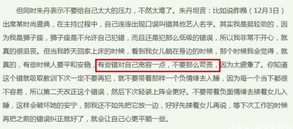 朱丹这种让别人包容、对自己宽容的态度,可能真的比较有利于自己的心理健康,但是对于提升自己的业务能力,却是无济于事。