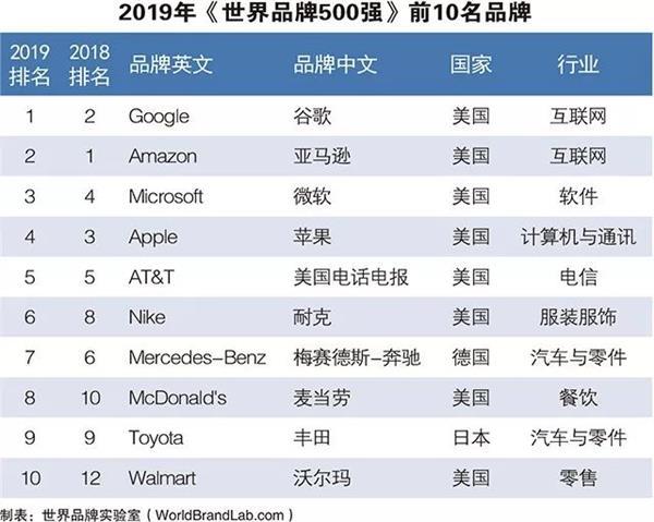 日前,世界品牌实验室(WorldBrand Lab)发布了2019年度(第十六届)《世界品牌500强》排行榜。榜单显示,得益于云计算和无人驾驶等领域的业务增长,去年的亚军谷歌一举击败亚马逊荣登榜首;亚马逊退居第二,微软名列第三。