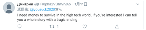 “我需要钱才能在高科技世界中生存,如果您感兴趣,我可以给您讲一个完整的、拥有悲惨结局的故事。”