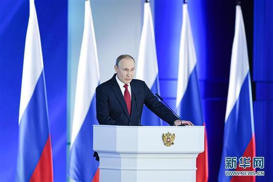 1月15日,在俄罗斯首都莫斯科,俄总统普京向议会上下两院发表国情咨文。新华社发(叶甫盖尼·西尼岑摄)