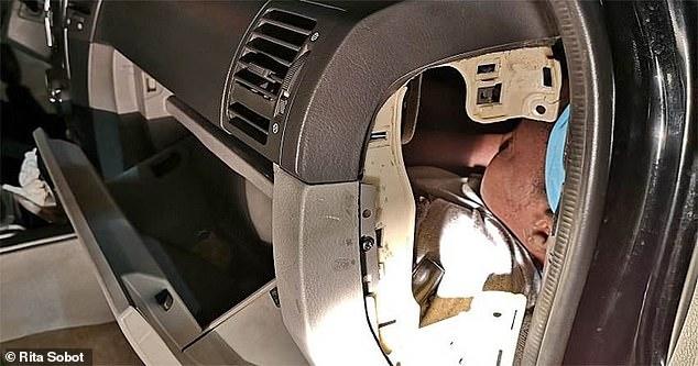 警方发现男孩以胎儿姿态蜷缩在仪表盘下。图据英国《每日邮报》
