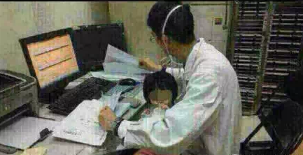 图中不是大夫的孩子, 而是病房的小患儿. 因为老哭太粘人, 就一边抱着哄着一边干活......