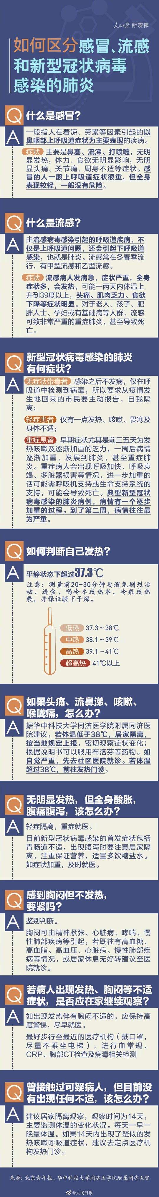 头痛、流鼻涕、咳嗽、喉咙痛怎么办?如何判断是否发热?如何区分感冒流感和新型冠状病毒肺炎?一图了解↓↓为自己和家人健康,转存!