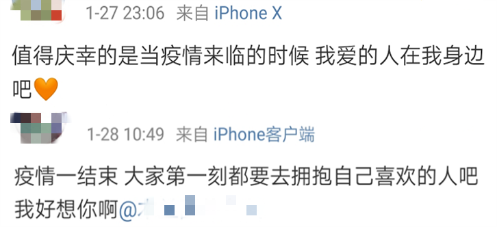 因这次突如疾来的肺炎,所有人都更深切地体会到,爱,是战胜困难的精神力量,等这次疫情过去了,想见的人尽情去见,想表白的人去表白,想在一起的人就努力在一起,大家都祈祷着一切赶快好起来,期待着去笑,去爱,去生活,别留遗憾。