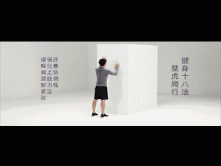 身体稳定向前压, 双手扶墙往上爬, 上下重复需多次, 配合呼吸练肩胛。