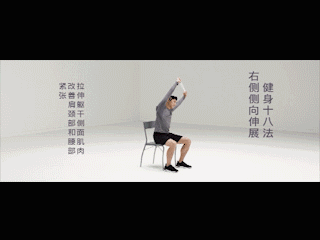 双手上举两交叉, 身体侧弯向旁拉, 左右交替做伸展, 松解腰部顶呱呱。