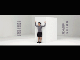 背部紧靠墙壁, 外展打开双臂, 贴墙缓缓而上, 徐徐回到原状。