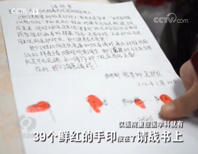 不到一天的时间,四川南充川北医学院附属医院仅医院重症医学科就有39个鲜红的手印按在了请战书上。