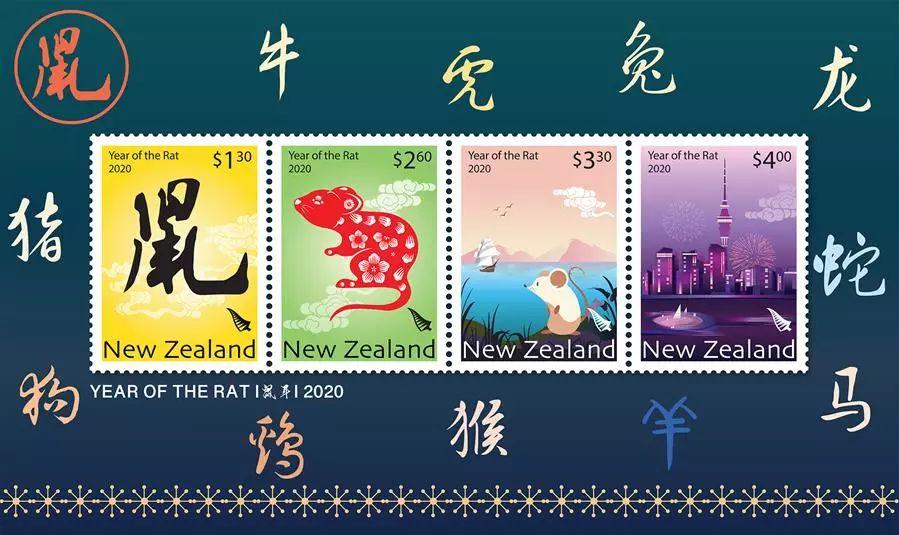 新西兰邮政发行的2020中国鼠年生肖邮票,邮票的设计者、华裔设计师李勃介绍,鼠年邮票在设计上沿用了传统的中国书法和剪纸等艺术形式↓
