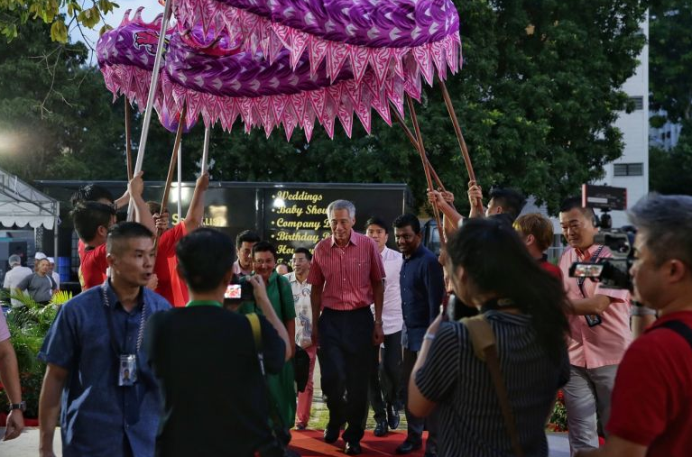 (2月1日,李显龙参加宏茂桥德义区新春晚宴活动。图自《海峡时报》)