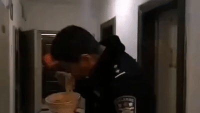 所以站在门口狼吞虎咽地把一碗面吃完,