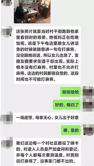 "我当时不在那个村,赶紧联系了村干部上门,核实打麻将的事情。"了解情况事情原委,俞主任这才放心。"我就说,不可能打麻将的,现在就连出门我们都要及时劝阻的,村民们很自觉、很重视。"