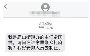 "我是鹿山街道办的主任俞国林,请问在谁家里聚众打麻将?我好安排人员去制止。"这时,距离朋友圈发出过去了 13 分钟。