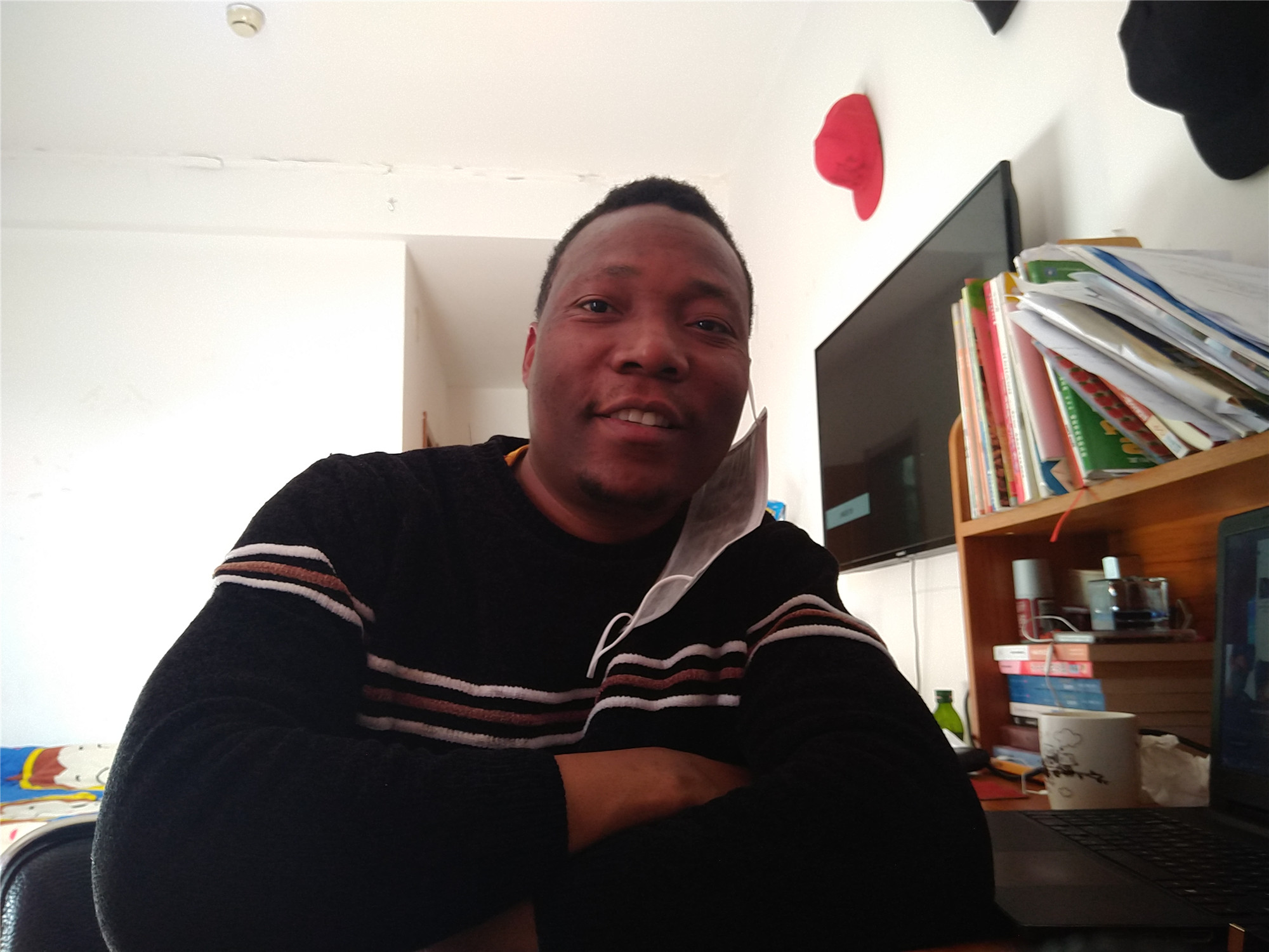 疫情发生后,拉扎所在的学校将他居住的宿舍由两人一间调整为一人一间。拉扎很少外出,这让他拥有了更多时间准备毕业论文。他每次返回宿舍时,老师都会为他测量体温。“我感到很温暖。”他说。