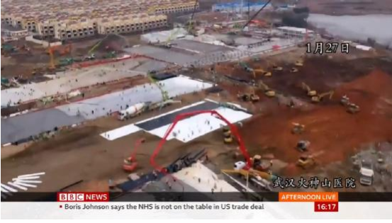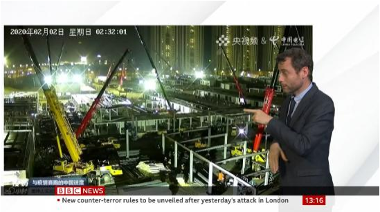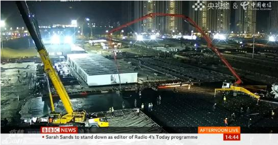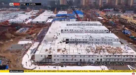 △英国天空新闻台播出总台火神山医院建设延时拍摄视频
