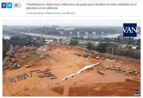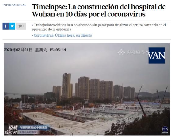 △2月2日在西班牙主流媒体《先锋报》刊登题为《受冠状病毒影响 武汉十天内建成医院》的文章