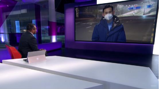为了让当地观众了解最新情况,英国第四频道Channel 4新闻节目连线总台CGTN派赴武汉记者唐博,了解李克强总理受习近平总书记委托,前往武汉考察指导疫情防控工作,通过对讲机问候住院感染病人,鼓励医护人员打好抗击疫情战役,视察武汉火神山医院施工工地的情况。