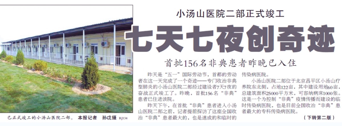 2003年5月1日是一个不同寻常的劳动节,小汤山医院开始收治病人。