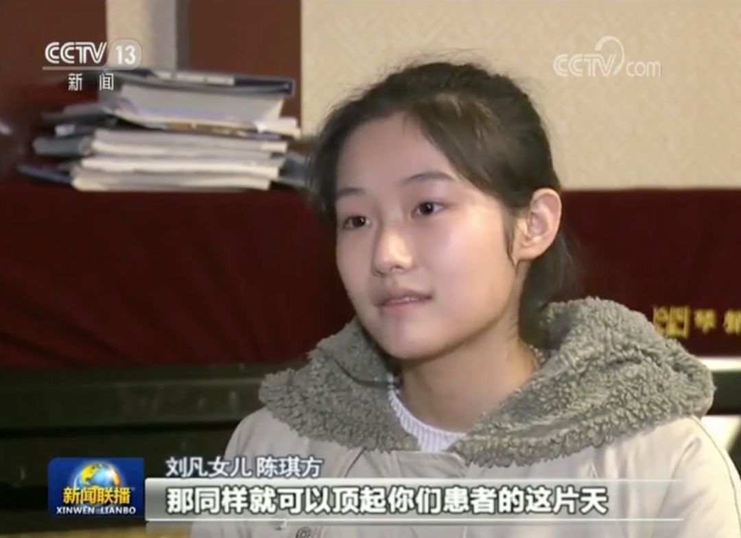 刘凡女儿 陈琪方:在我的世界里面,我的妈妈和我的外公是很行的。我把他们借给患者,他们能顶起我这个家,那同样就可以顶起你们患者的这片天。我发了这篇文章以后,很多人说加油、加油,那一瞬间觉得,这个年挺暖和的。
