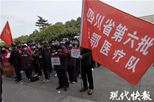 2 月 9 日下午,四川省第六批援助湖北医疗队出征。据悉,四川省第六批援湖北医疗队成员共计 303 人,分别来自成都市、自贡市、攀枝花市、泸州市、德阳市、绵阳市、广元市、内江市、雅安市、眉山、资阳市的 72 家医院。