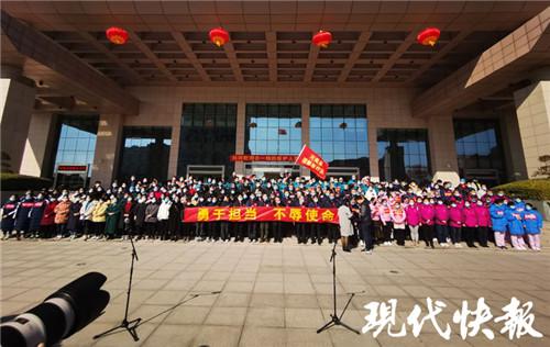 2 月 9 日 17 点 10 分,来自安徽省 16 个地市的医院及安医一附院、合肥京东方医院,由 100 名医生 200 名护士共 300 人组成的超强"战队"踏上了"战疫"之路。