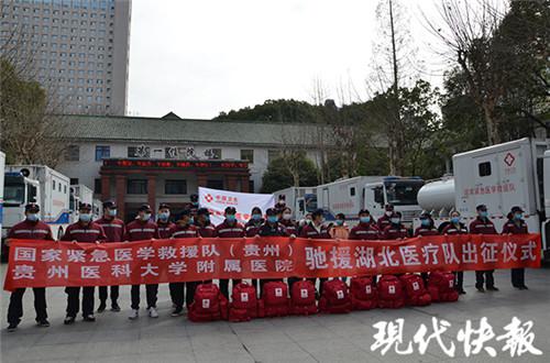 2 月 9 日,根据国家卫生健康委安排,国家紧急医学救援队(贵州)驰援湖北武汉执行传染病救治任务。救援队由贵州医科大学附属医院急诊医学科、感染管理科、内科 ICU、省紧急救援中心 96999、检验科、影像科、肝胆外科等科室共 42 名人员组成。