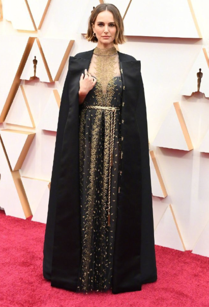 娜塔莉·波特曼的黑金长裙搭配黑色斗篷暗藏玄机。