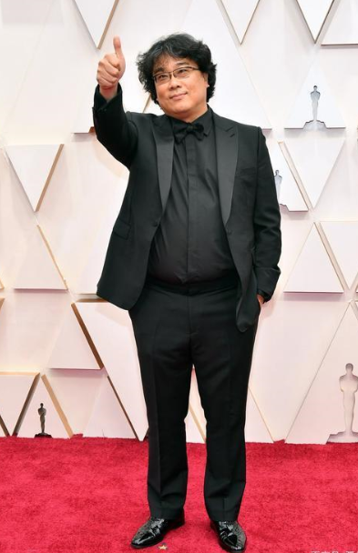 首次踏足奥斯卡的影片主创十分兴奋,在摄像机前表现出了相当欢脱的气氛,非常有感染力。奉俊昊身着全黑的西装,冲着镜头比起大拇指,看来是对自己的影片冲击奥斯卡有着十足的信心。