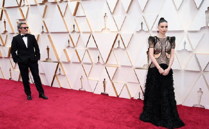 在奥斯卡红毯上还有不少情侣在默默地撒狗粮。本届奥斯卡影帝的大热人选、《小丑》的主人公华金·菲尼克斯,竟然和出演过《龙纹身的女孩》和《卡罗尔》的演员鲁尼·玛拉是一对。