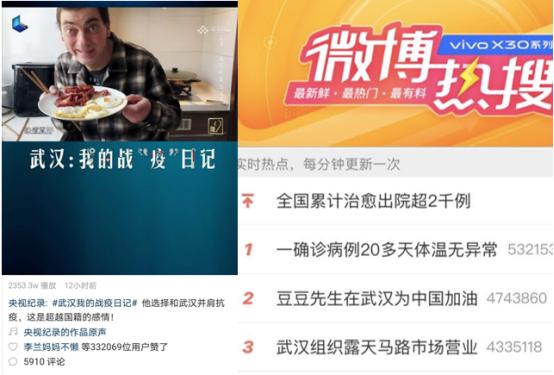 截至今早8点,战“疫”日记之《逗逗先生篇》在央视纪录快手号的播放量已超2300万。而在昨晚播出当日,《豆豆先生在武汉为中国加油》的微博也登上微博热搜榜,不少网友评论“众志成城,为坚强乐观的人们点赞”“这些看似平凡的普通人,值得被铭记”。