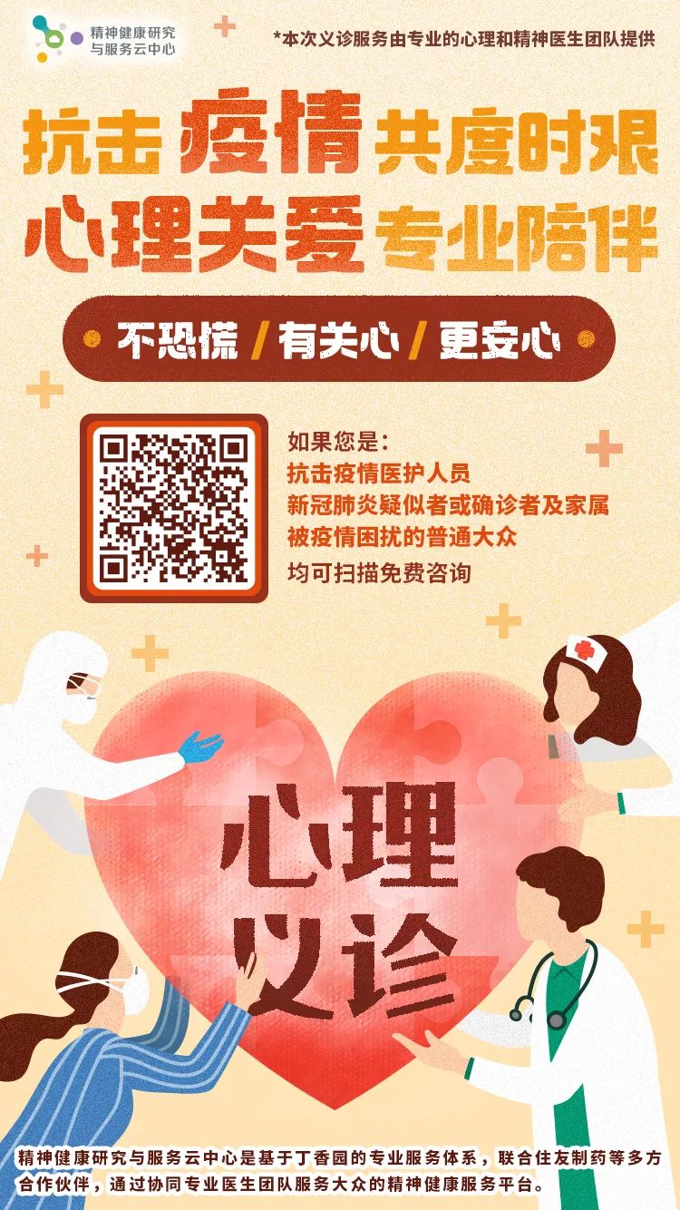 “精神健康研究与服务云中心”在 1.29 紧急上线了“爱在身旁?全国心理义诊”活动,集结全国心理和精神领域的专业医生团队,希望能陪伴在一线的医护人员,除了战胜疫情,也战胜心理焦虑。
