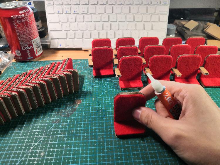 说起制作过程,@冷阿狗告诉记者,大概就花了一天多的时间,“因为无需采购,都用的一些废弃物,比如电影院座椅和台阶,都是瓦楞纸箱,座椅上的红布是旧衣服剪出来的”。