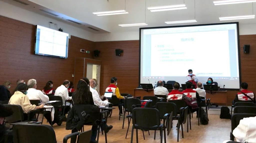 14 日下午,中国医疗专家在罗马大学附属医院就疫情防控及诊疗与当地同行交流。杨汇川供图