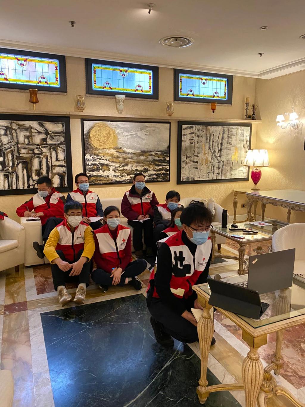 中国专家组一行九人,有来自疾病预控领域的专家,有来自呼吸科和 ICU 的专家,他们在如何救治病人方面很有经验。我本人主要负责介绍康复者血浆治疗的经验和技术。