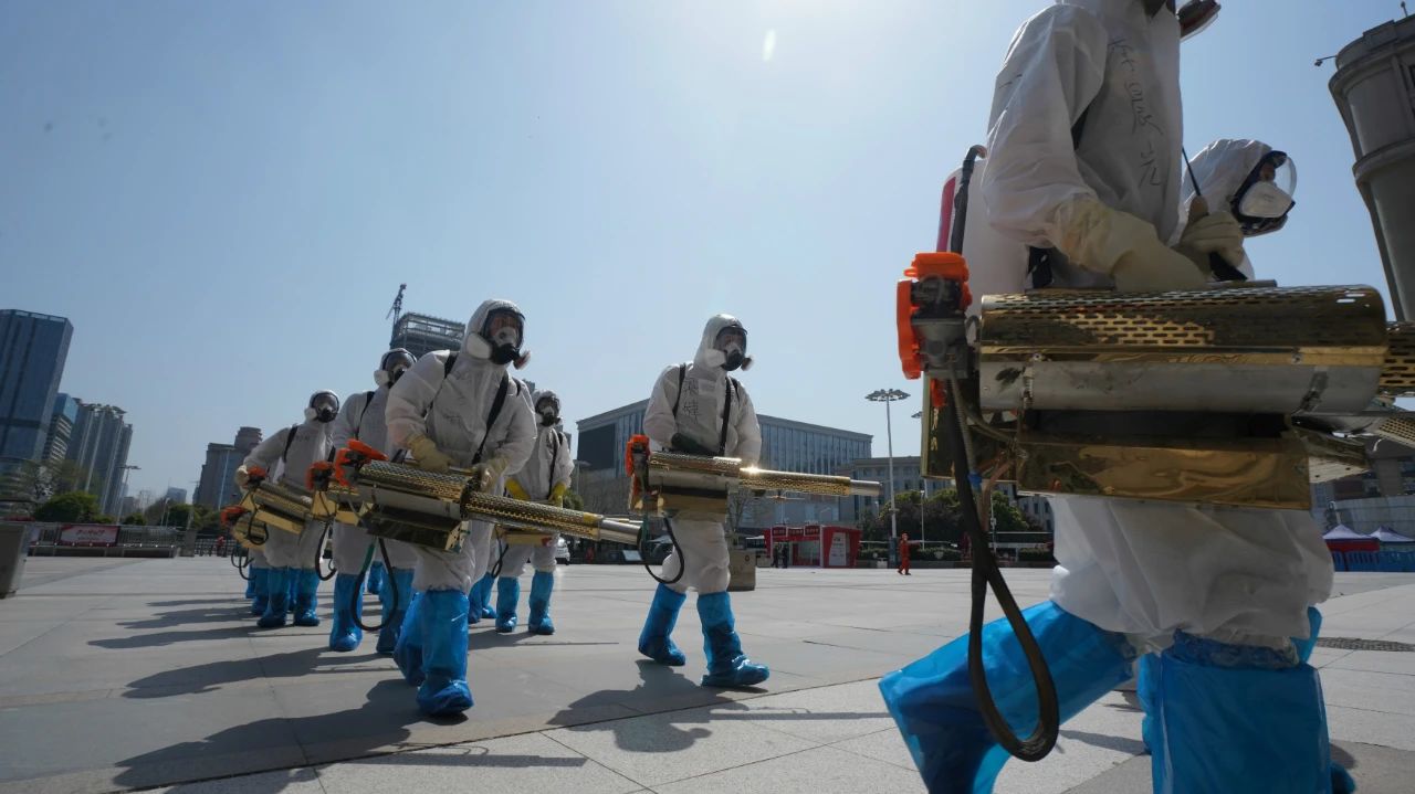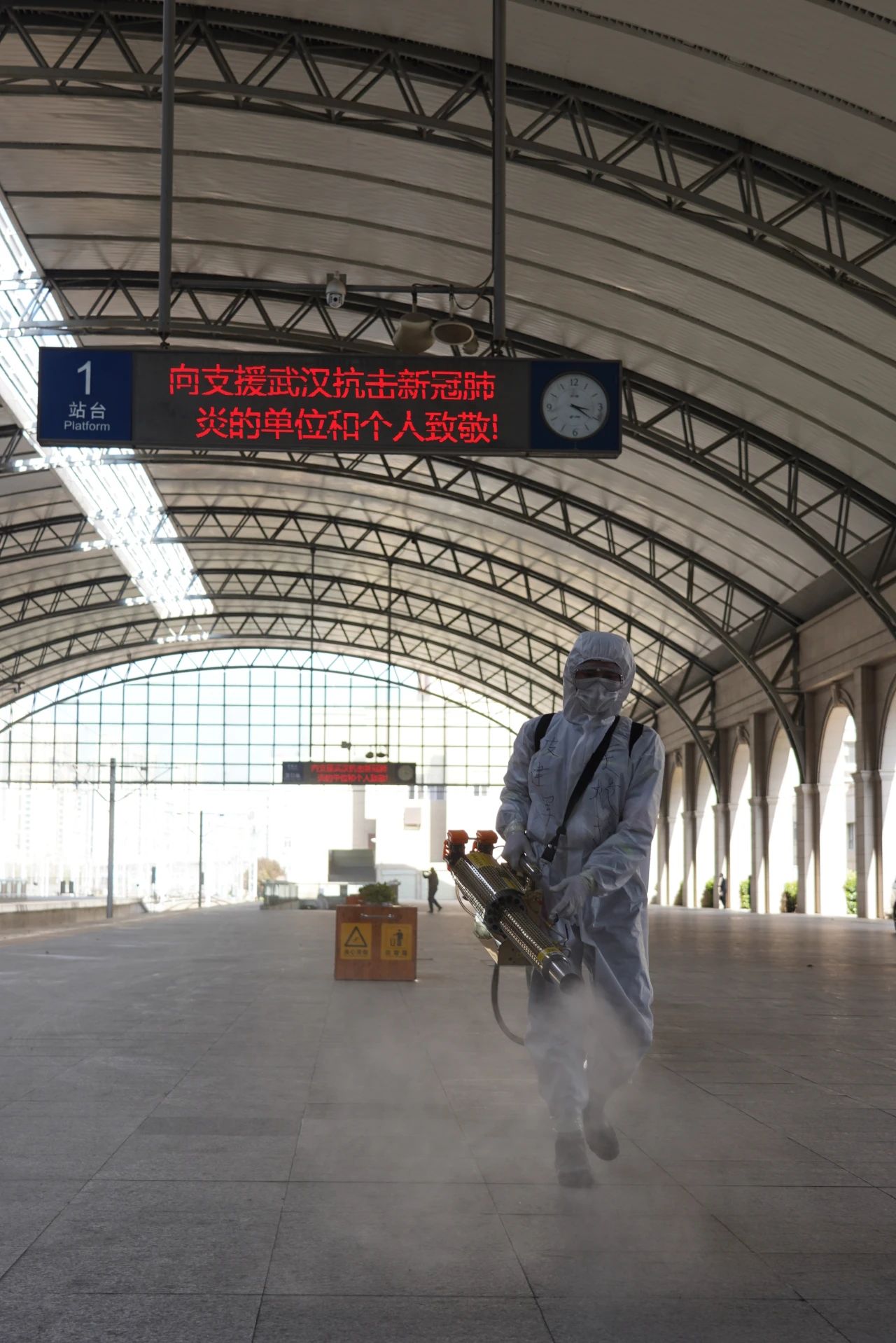 3月20日,来自全国各地的蓝天救援队队员,齐聚武汉汉口火车站,开始对关闭了58天的火车站展开全面消杀工作!
