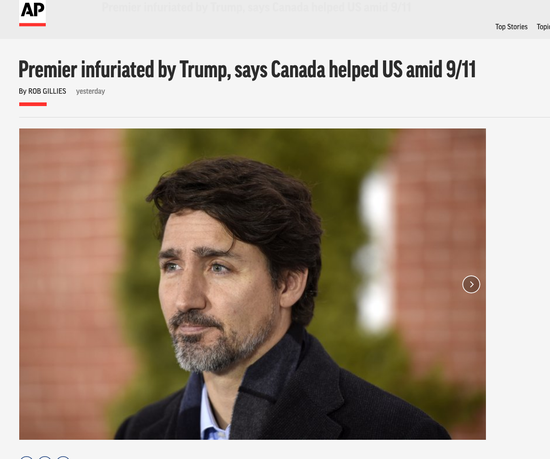 美联社5日注意到,与加拿大多位省长不同的是,加拿大总理特鲁多则选择了更加外交式的做法。