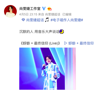 唯有处于漩涡中心的尚雯婕相对冷静,以工作室发言隔空回应称,“沉默的人,用音乐大声说话”。