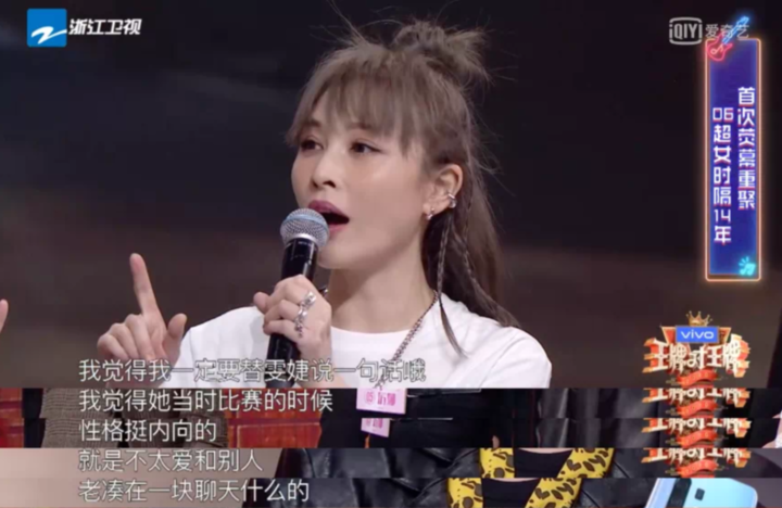 没想到在唱完主题曲《唱得响亮》的短暂温情之后,就变成了对于尚雯婕的声讨现场,大家指出尚雯婕一直没有参加过06届超女的聚会。