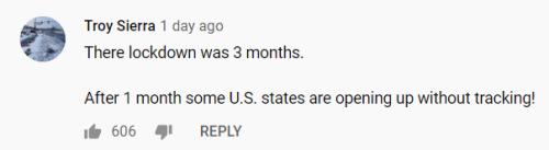 他们在评论下疯狂吐槽道,人家中国为了抗击疫情能忍这么久,而美国现在疫情这么严重,却还在要求重新开放:“中国封锁了三个月,而美国刚呆了一个月就坐不住要重新开放,还没有追踪措施!”