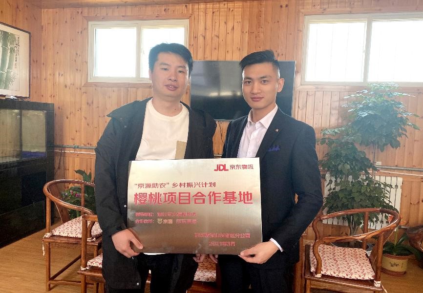 张亚飞(右一)与京东物流合作的产地云仓从苹果项目扩展到樱桃项目。
