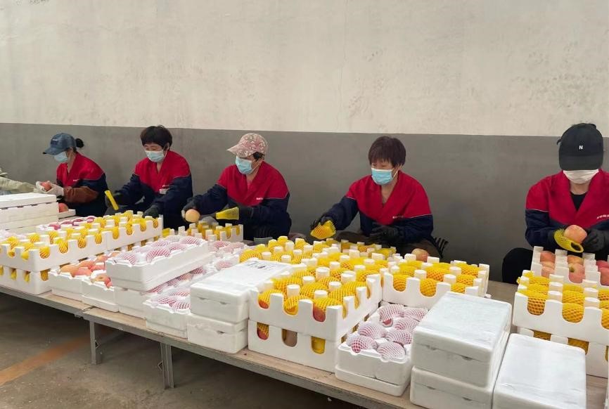 2021年3月,双方合作签约,10000平米的产地仓配备3000平米的自动化打包车间,兼具水果拣选、清洗、包装、存储、发货等一系列功能,可存储2万吨苹果。在引入京东物流智能管理系统的同时,还成为烟台苹果直播供应链基地,打开了多平台的销售渠道,让更多当地果农愿意把苹果拉到这里。“以前是从招远下面的齐山镇等地收苹果,现在我们收苹果的范围扩大到了全市。”