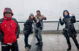 2014年2月9日,上海部分地区飘落零星小雪。这场马年初雪也是申城今冬第一场雪,较常年偏晚了45天。 组图为文汇报记者在外滩、人民广场等地拍摄的雪中即景。