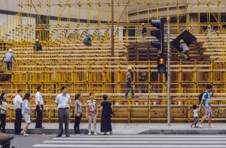 2014年上海旅游节将于9月13日至10月6日正式拉开帷幕。9月10日,在淮海路龙门路口,开幕式主会场正在紧张有序地搭建中。张挺 摄